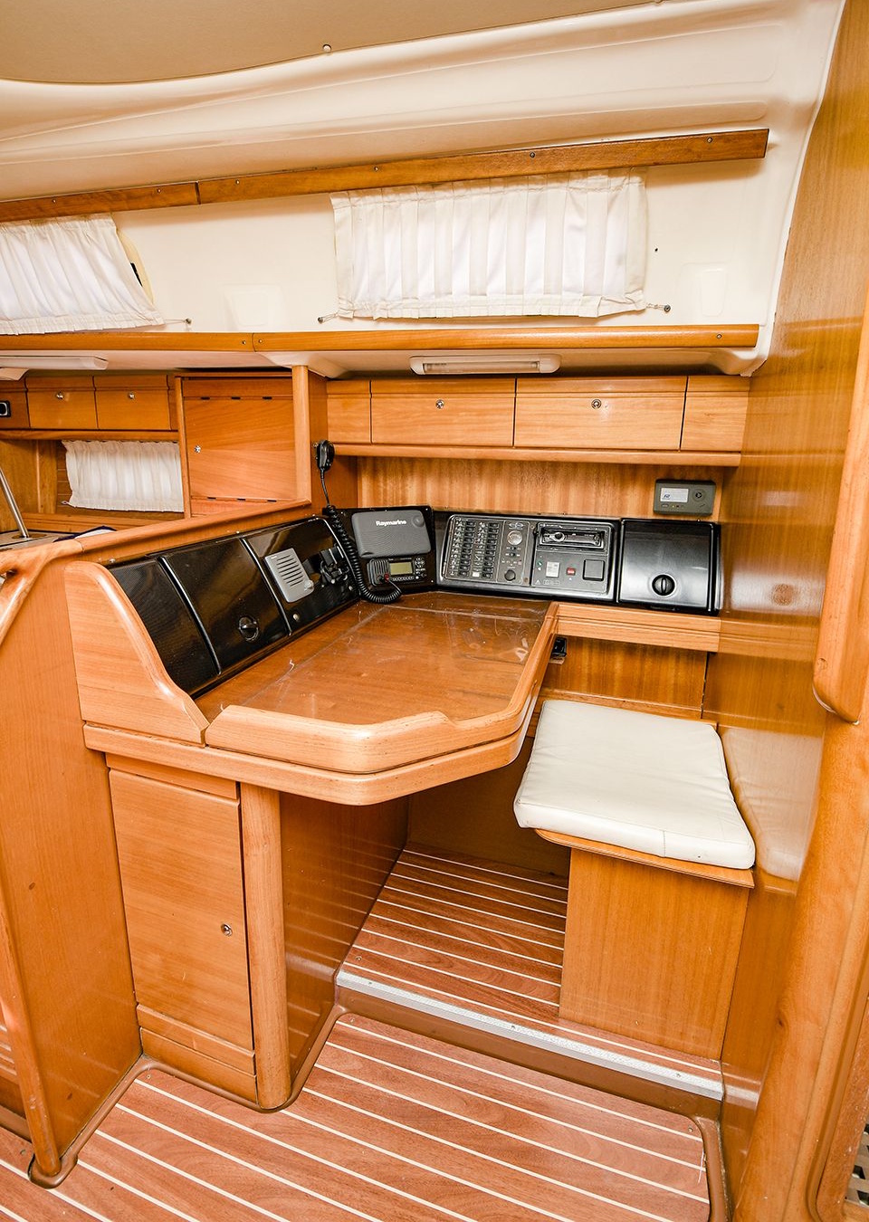 Кроме зоны отдыха и камбуза, в кают-компании расположен штурманский столик. Тут расположены элементы управления оборудованием, радиостанция, навигационное оборудование и документация. Всё что расположено в этом уголке, имеет очень важное значение для управления судном и эксплуатации судовых систем.